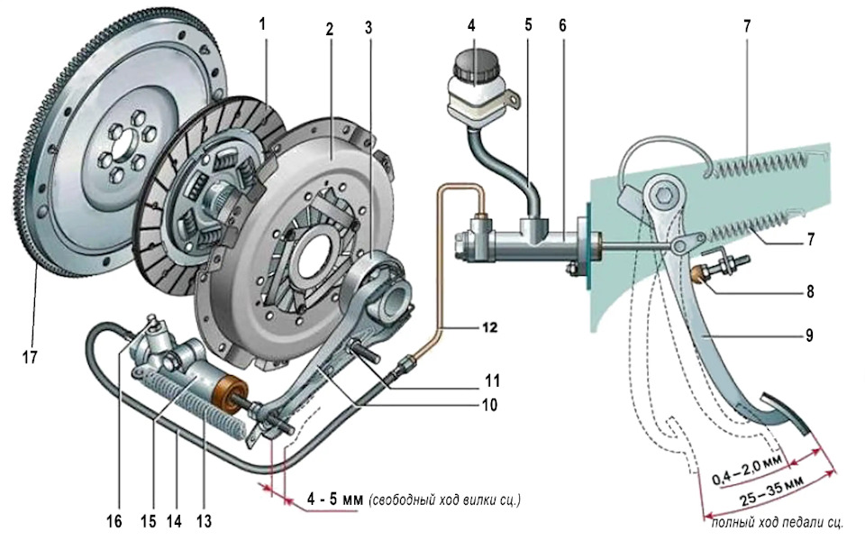Регулировка сцепления обязательна после замены/ремонта сцепления или его элементов, например, приводящего троса. Процедура требуется даже при подозрениях на отклонение амплитуды педали от нормальных показателей: