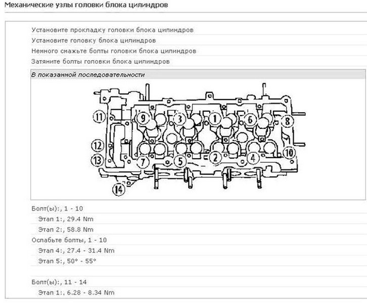 Соблюдение стандартных правил затяжки болтов головки должны соблюдаться для всех типов двигателей.