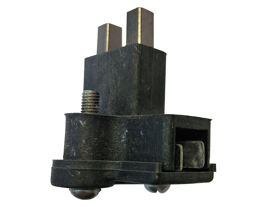 Проверьте легкость хода щеток в щеткодержателе. Если щетки застряли, открутите два фиксирующих винта и снимите крышку держателя щеток.
