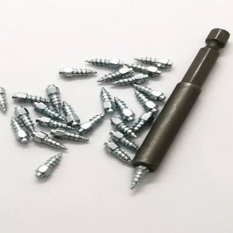 Китайские умельцы утверждают, что благодаря новой модели винта, вкручивать и выкручивать шипы можно много раз, так что реально не тратиться на второй комплект резины. Как вариант – покупаем всепогодную и усиливаем ее от случая к случаю. В комплекте за указанную цену вы получаете саму биту под шипы и 100 штук вольфрамовых шипов, как пишут китайцы «супер прочных и прочных».