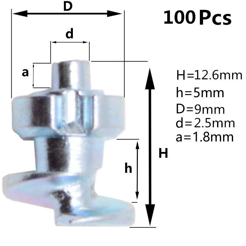 Тут 100 алюминиевых шипов размером 10*8мм. Установить шипы можно самостоятельно, применяя клей и молоток.
