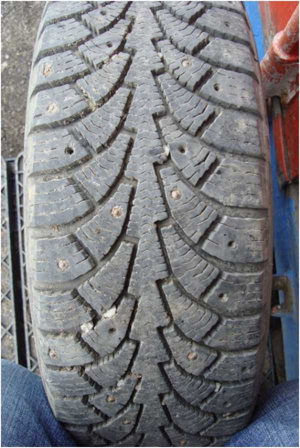 - металлические элементы потеряли изначальную прочность фиксации, их без особых усилий можно утопить внутрь покрышки, расшатать;