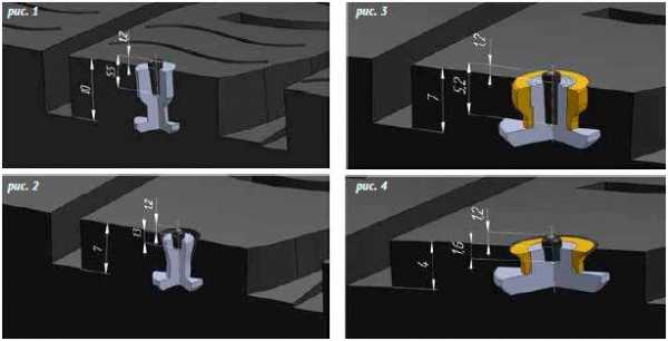- нажимается курок, под большим давлением элемент буквально “влетает” в гнездо и фиксируется.