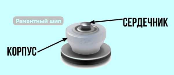 Непосредственно перед установкой металлического элемента посадочное гнездо немного расширяется отверткой, а шип также промывается мыльным раствором.