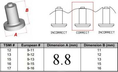 Далее мы будем объяснятся не совсем объективными понятиями для рядового автомобилиста, но они более точно передают суть подбора шипа. Существует два стандарта, по которым производятся шипы для шин, а именно Канадского института (TSMI) и европейский стандарт. Так мы приведем подбор шипа под глубину отверстия для стандарта (TSMI), а в сводной таблице ниже, что говорится, придем к одному «знаменателю» для данных стандартов.