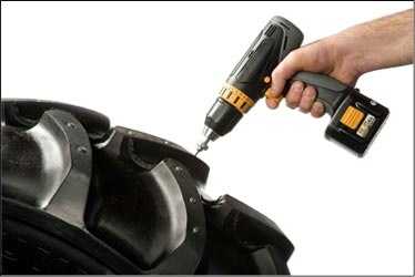 При применении шуруповерта потребуется специальная насадка для шипов. Инструмент следует располагать строго под прямым углом к шине.