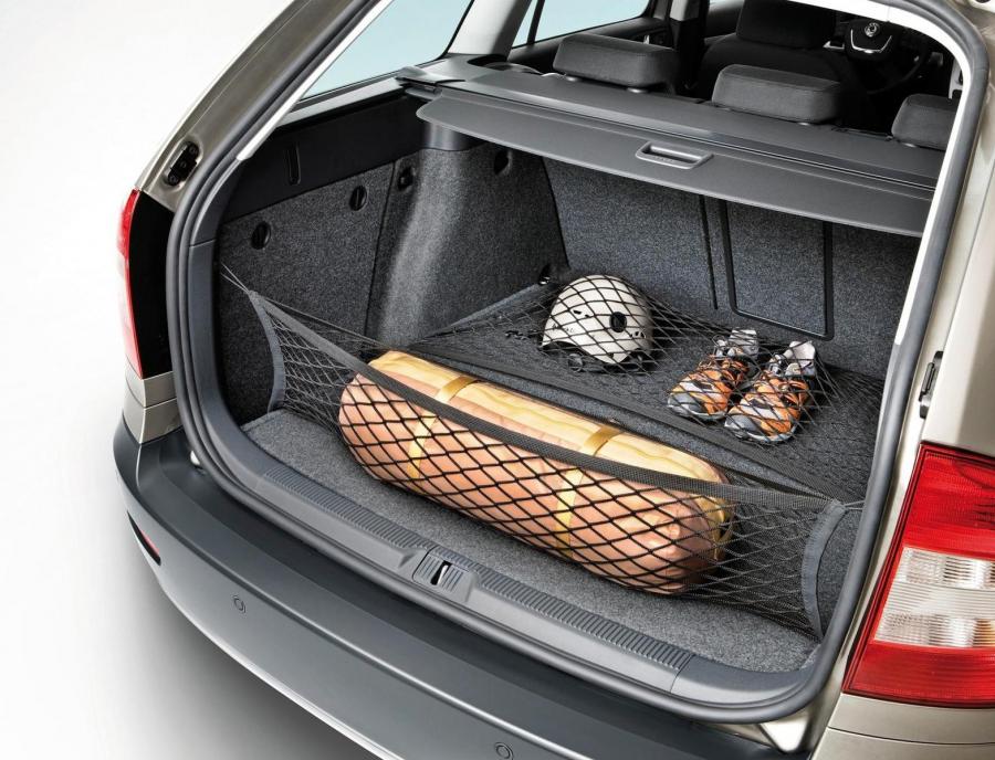 Объем багажника в Шкода Октавия Универсал — чемпион в своем классе. Больше только у Superb. Здесь найдется все: два светильника, розетка на 12V, второе дно с запаской, сетки, дополнительная полка, регулируемое по высоте дно, складной задний диван, двухсторонний коврик и пр. Но обо всем по порядку.