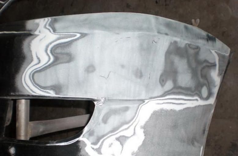 При наличии повреждений по всей пластиковой поверхности изделия основание полностью шпаклюется с неповрежденными участками.