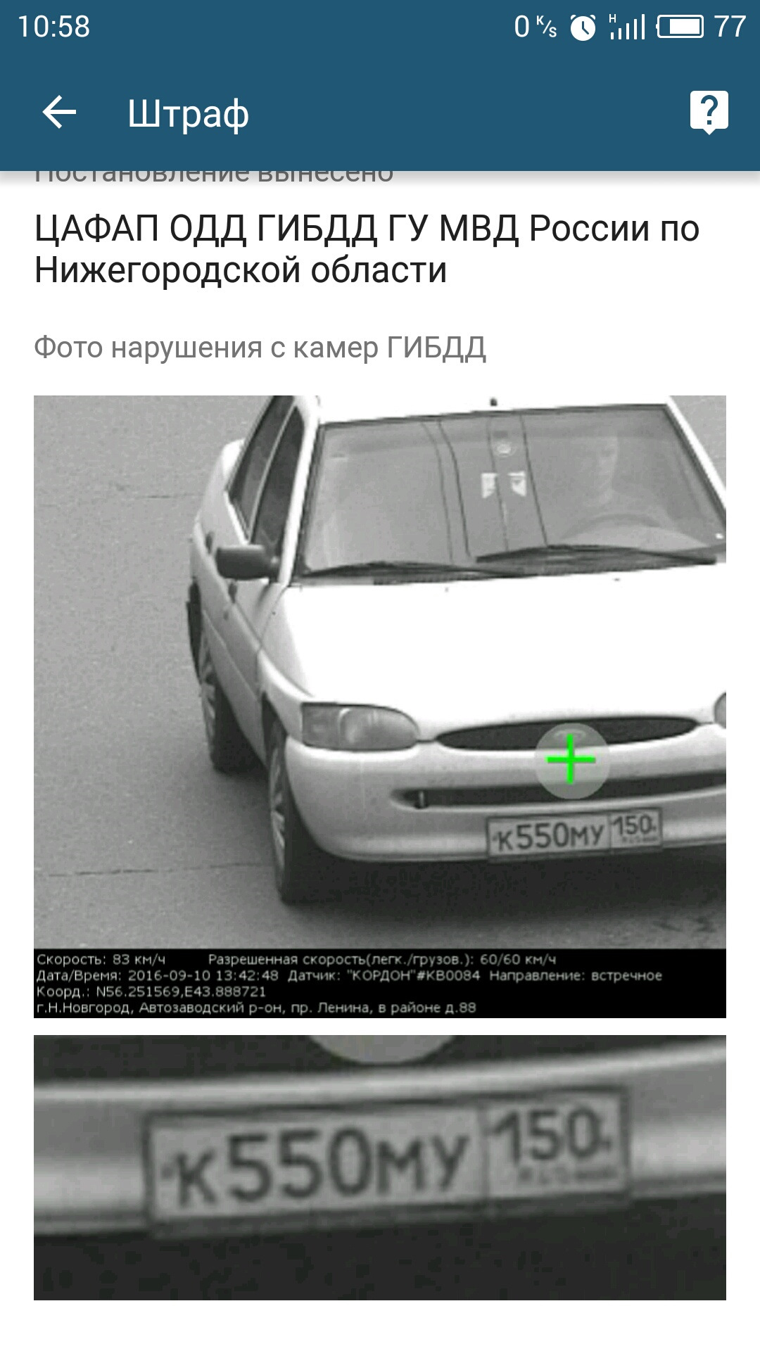 Информацию о штрафах также можно посмотреть, вписав номер постановления в соответствующее поле в приложении. При получении информации о штрафе станет доступна информация с камер ГИБДД.