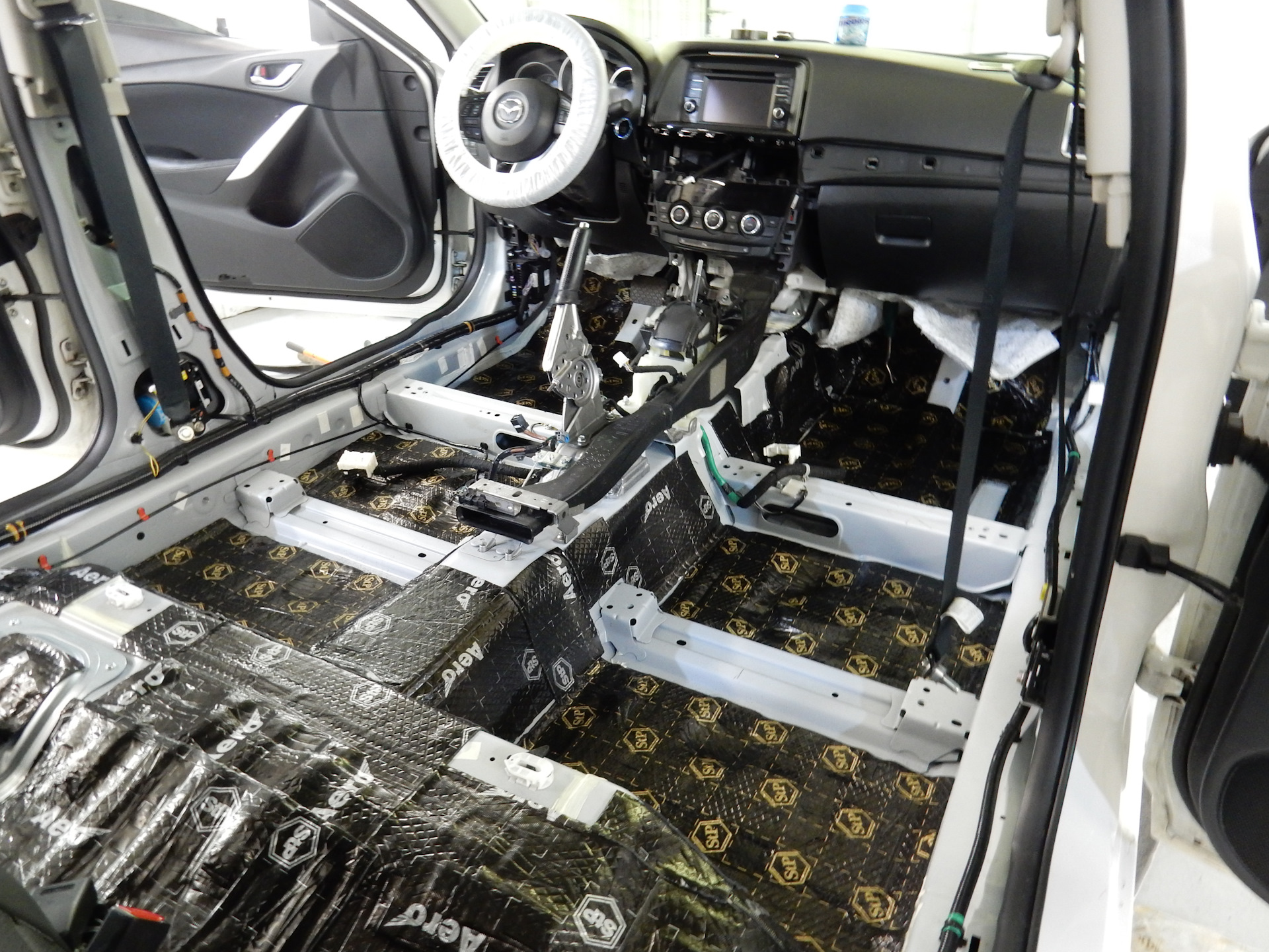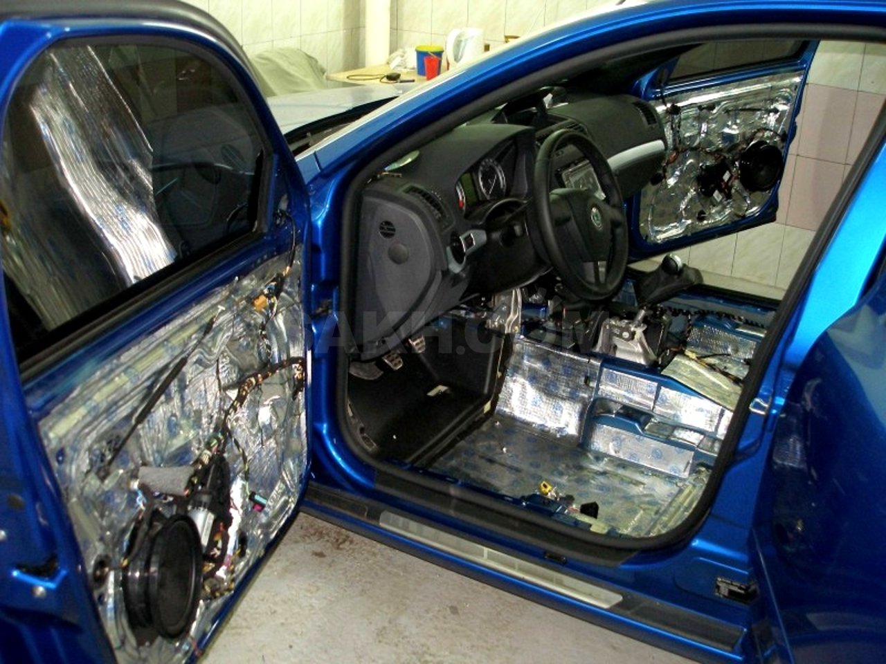 Фотографии салона автомобиля, разобранные для звукоизоляции