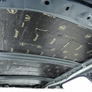 Шумоизоляция капота чем-то схожа с шумоизоляцией крышки багажника. Если изначально установлена заводская шумоизоляция, то просто удаляем её. Затем между рёбрами жёсткости клеим «StP Aero» («Вибропласт Gold New»).