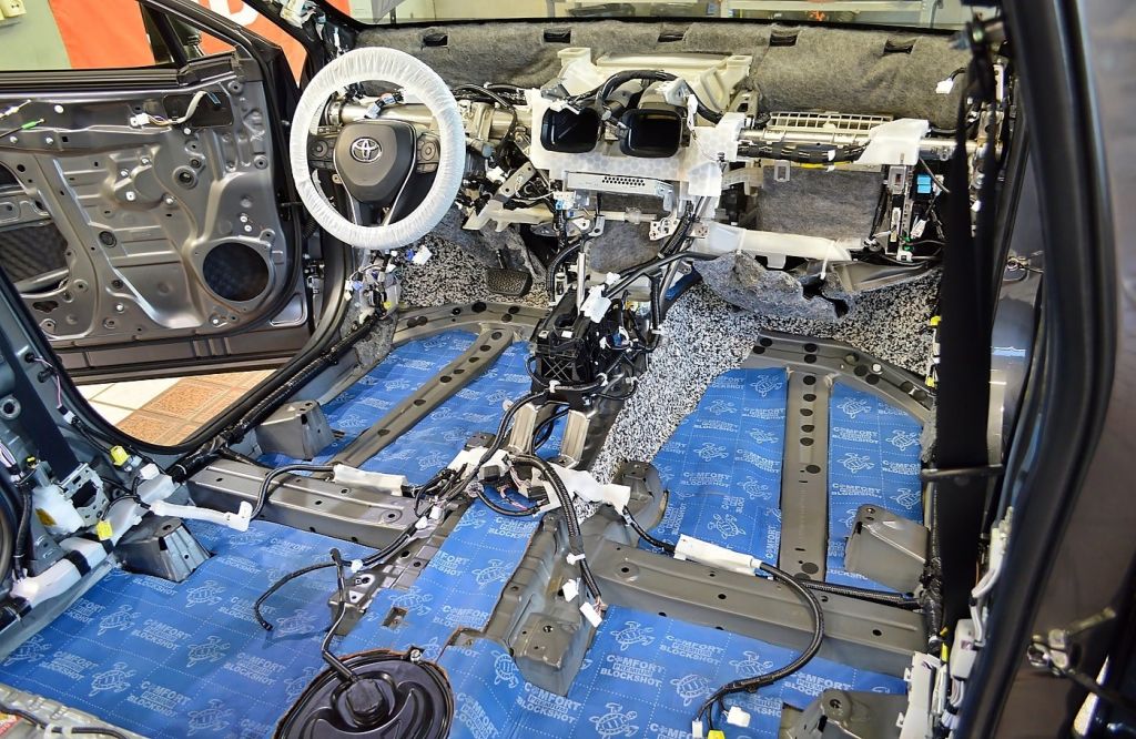 Перед укладкой шумоизоляции заделайте имеющиеся отверстия, стыки или щели на поверхности.