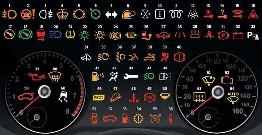 Предназначение значков на приборной панели автомобиля
