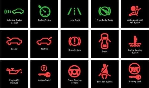Новые автомобили помимо стандартных пиктограмм на приборной панели имеют множество новых символов, которые относятся к индикации многих функций систем безопасности и помощи водителю.