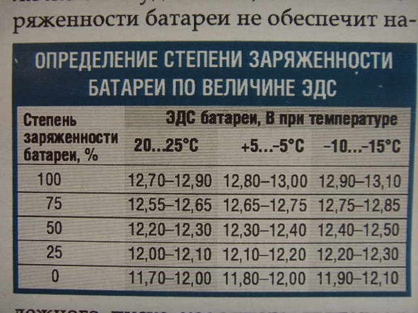 Π‘ΠΊΠΎΠ»ΡΠΊΠΎ Π°ΠΌΠΏΠ΅Ρ, ΡΡΠΎΠ±Ρ Π·Π°ΡΡΠ΄ΠΈΡΡ Π°ΠΊΠΊΡΠΌΡΠ»ΡΡΠΎΡ Π°Π²ΡΠΎΠΌΠΎΠ±ΠΈΠ»Ρ Π±ΡΠ΄Π΅Ρ Π½Π°ΠΏΡΡΠΌΡΡ Π·Π°Π²ΠΈΡΠ΅ΡΡ ΠΎΡ Π²ΡΡΠ΅Π½Π°Π·Π²Π°Π½Π½ΡΡ ΠΏΠΎΠΊΠ°Π·Π°ΡΠ΅Π»Π΅ΠΉ. ΠΡ ΠΌΠΎΠΆΠ½ΠΎ Π½Π°ΠΉΡΠΈ Π»ΠΈΠ±ΠΎ Π½Π° ΠΊΠΎΡΠΏΡΡΠ΅ Π°ΠΊΠΊΡΠΌΡΠ»ΡΡΠΎΡΠ°, Π»ΠΈΠ±ΠΎ Π² Π΅Π³ΠΎ ΠΏΠ°ΡΠΏΠΎΡΡΠ΅. ΠΡΠΎΠ²Π΅ΡΠΈΡΡ, Π·Π°ΡΡΠΆΠ΅Π½Π° ΠΈΠ»ΠΈ ΡΠ°Π·ΡΡΠΆΠ΅Π½Π° Π±Π°ΡΠ°ΡΠ΅Ρ ΠΌΠΎΠΆΠ½ΠΎ Ρ ΠΏΠΎΠΌΠΎΡΡΡ ΠΌΡΠ»ΡΡΠΈΠΌΠ΅ΡΡΠ° β ΠΏΡΠΈ ΡΠ°Π·ΡΡΠΆΠ΅Π½Π½ΠΎΠΌ ΡΠΎΡΡΠΎΡΠ½ΠΈΠΈ ΠΎΠ½ ΠΏΠΎΠΊΠ°ΠΆΠ΅Ρ Π·Π½Π°ΡΠ΅Π½ΠΈΠ΅ ΠΎΠΊΠΎΠ»ΠΎ 11,5 ΠΠΎΠ»ΡΡ. ΠΠΌΠ΅Π½Π½ΠΎ ΡΠΎΠ³Π΄Π° Π½ΡΠΆΠ½ΠΎ ΠΏΡΠΎΠΈΠ·Π²ΠΎΠ΄ΠΈΡΡ ΠΏΠΎΠ΄Π·Π°ΡΡΠ΄ΠΊΡ, ΡΡΠΎΠ±Ρ Π² Π΄Π°Π»ΡΠ½Π΅ΠΉΡΠ΅ΠΌ ΠΌΠΎΠΆΠ½ΠΎ Π±ΡΠ»ΠΎ ΡΠΊΡΠΏΠ»ΡΠ°ΡΠΈΡΠΎΠ²Π°ΡΡ Π°Π²ΡΠΎΠΌΠΎΠ±ΠΈΠ»Ρ.