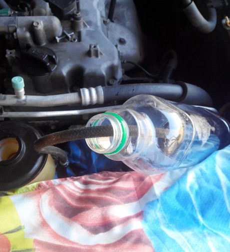 Снимите резервуар и хорошо промойте его; - шланг обратной магистрали опустите в емкость. Установить ее так, чтобы старая жидкость не проливалась в процессе слива;