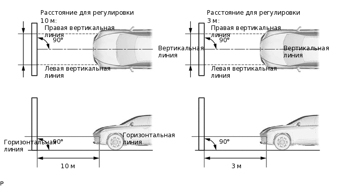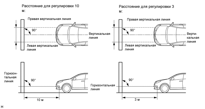 ПРИМЕЧАНИЕ: Фары дальнего света необходимо направлять с помощью оптического корректора фар. Допуск в четыре дюйма на 25 футов допускается как при горизонтальной, так и при вертикальной регулировке.