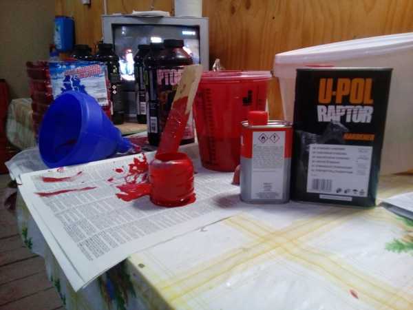 После грунтуем специальным грунтом под Раптор — я грунтовал кисточкой))), но лучше пуликом с компрессором…