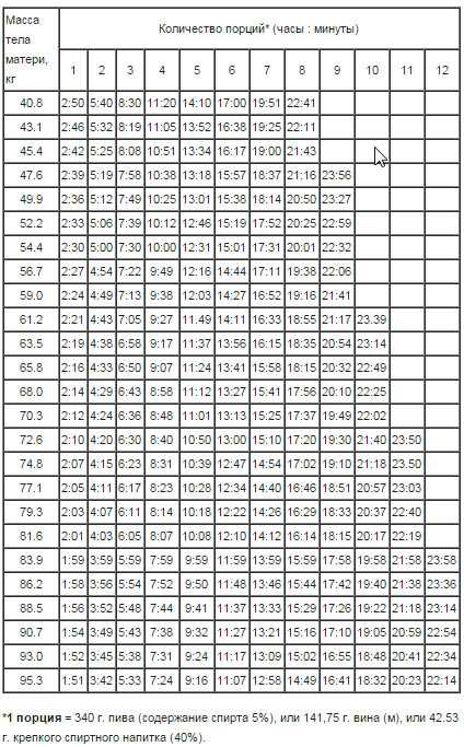 Через сколько выветривается алкоголь из организма, таблица полезная шпаргалка OMJ
