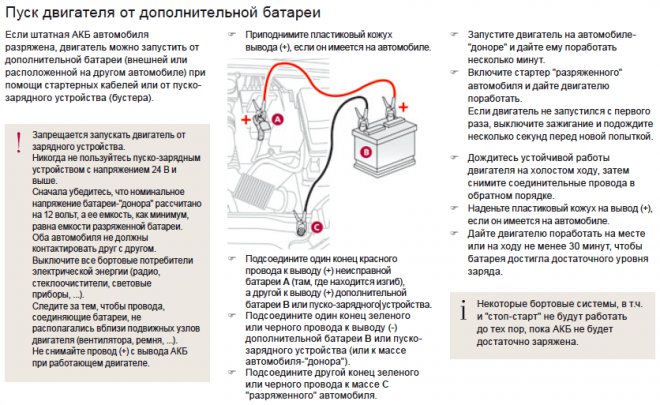 Если полная зарядка батареи занимает продолжительный период, а Вы ограничены во времени, можно обойтись подзарядкой аккумулятора на автомобиле. Достаточно, чтобы заряда хватило на один запуск двигателя, остальной заряд батарея доберет за счет использования генератора при движении.