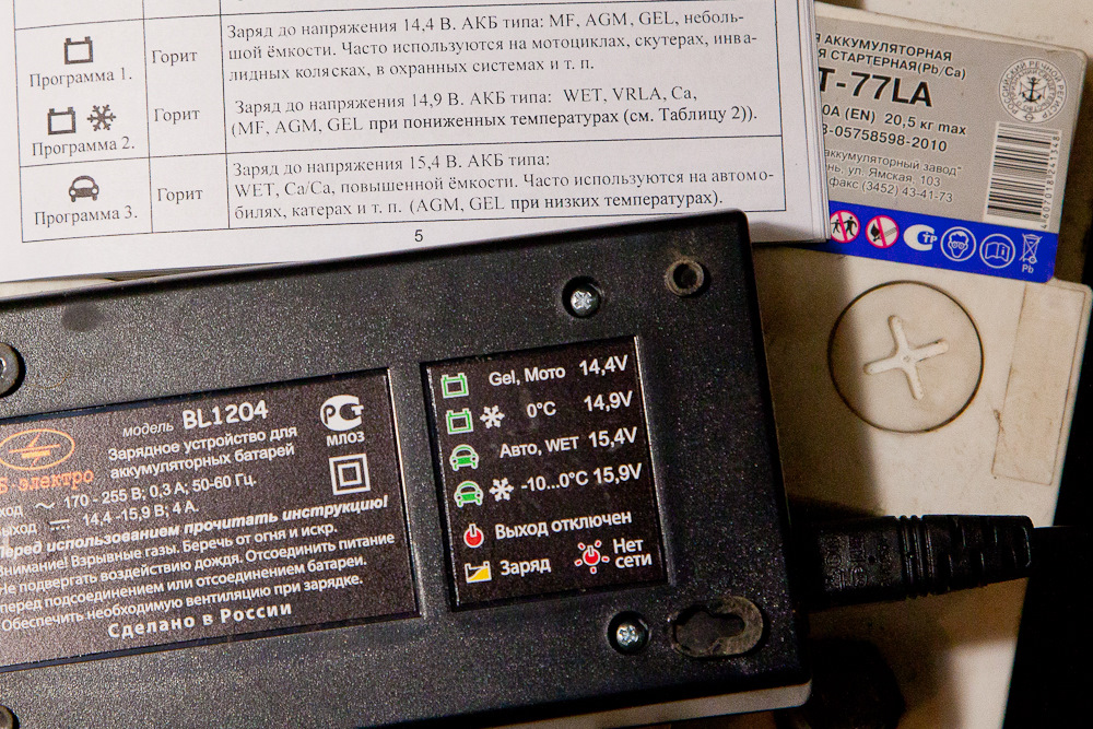 Задачей стационарного ЗУ состоит в частичном восстановлении АКБ, после чего генератор зарядит его до 100%. Современное зарядное устройство имеет ряд функций, которые не допускают закипание электролита в АКБ, и прерывают свою работу по достижению заряда в 14.4 Вольт.