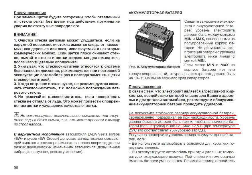 | Напряжение, В | 12,65 | 12,35 | 12,10 | 11,95 | <11,7 |