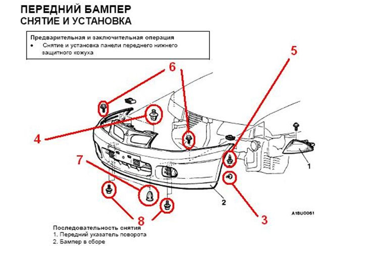 ΠΠΏΠΈΡΠ°Π½ΠΈΠ΅ ΠΏΡΠΎΡΠ΅ΡΡΠ° ΡΠ½ΡΡΠΈΡ ΠΏΠ΅ΡΠ΅Π΄Π½Π΅Π³ΠΎ Π±Π°ΠΌΠΏΠ΅ΡΠ° Π½Π° Renault Megane 2