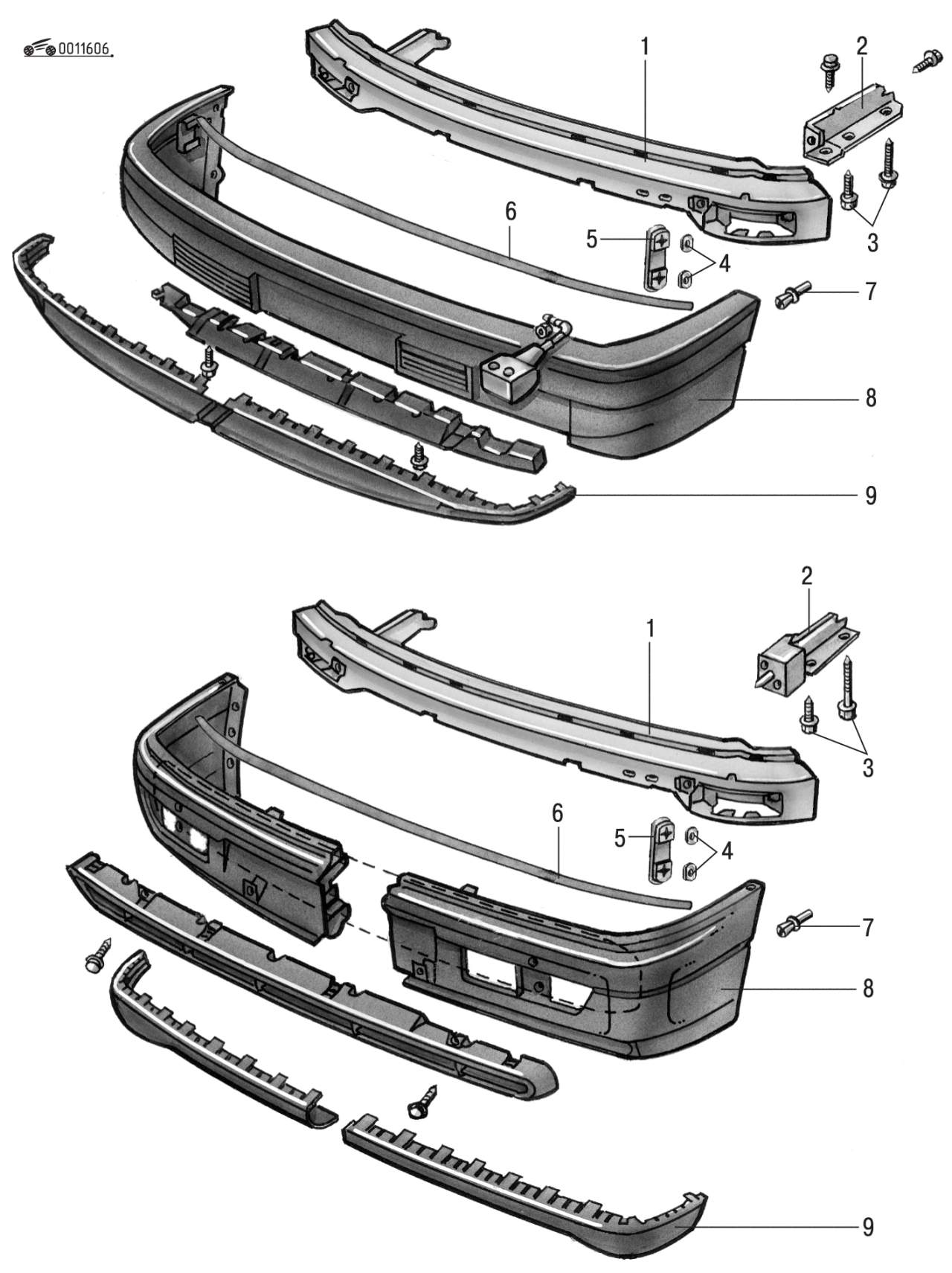 ΠΠ°Π΄Π½ΠΈΠΉ Π±Π°ΠΌΠΏΠ΅Ρ ΠΊΡΠ΅ΠΏΠΈΡΡΡΡ Π½Π° 8 ΡΠ°ΠΌΠΎΡΠ΅Π·ΠΎΠ². 4 (ΠΏΠΎΠ΄ Π½ΠΎΠΌΠ΅ΡΠΎΠΌ 12) ΡΠ°ΡΠΏΠΎΠ»ΠΎΠΆΠ΅Π½Ρ ΡΠ²Π΅ΡΡ Ρ, ΠΈ Π΅ΡΠ΅ 4 (13) Π² Π½ΠΈΠΆΠ½Π΅ΠΉ ΡΠ°ΡΡΠΈ. ΠΠ΅ΠΊΠΎΡΠ°ΡΠΈΠ²Π½Π°Ρ Π½Π°ΠΊΠ»Π°Π΄ΠΊΠ° ΠΏΡΠΈΠΆΠΈΠΌΠ°Π΅ΡΡΡ ΠΏΡΠΈ ΠΏΠΎΠΌΠΎΡΠΈ Π²ΠΈΠ½ΡΠΎΠ², ΠΎΡΠΌΠ΅ΡΠ΅Π½Π½ΡΡ ΠΏΠΎΠ΄ Π½ΠΎΠΌΠ΅ΡΠΎΠΌ 9 Π½Π° ΡΡ Π΅ΠΌΠ΅.