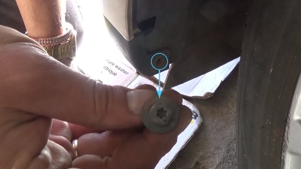 …и верхний саморезы крепления правого подкрылка к бамперу.