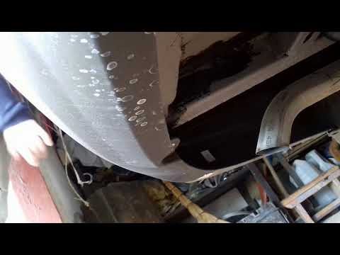7. Выведите левую боковину бампера Лада Гранта из щели, образованной задним крылом и приваренной к нему прижимной накладкой.
