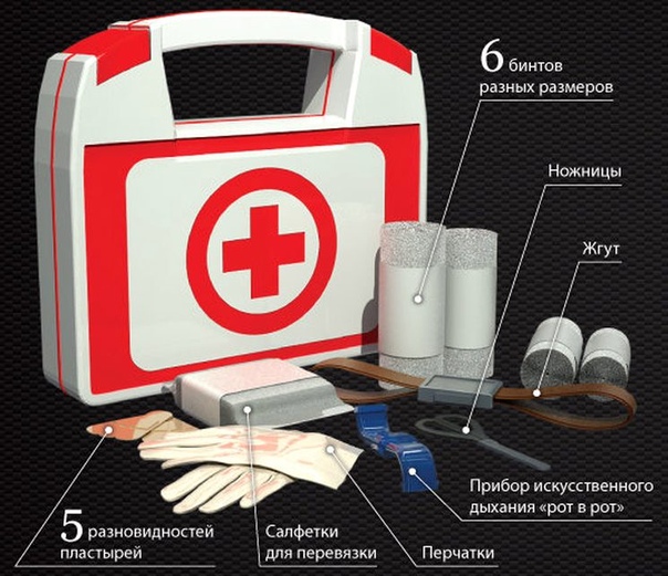 Зато в аптечке появились шесть бинтов разных размеров, ножницы, кровоостанавливающий жгут, резиновые медицинские перчатки, салфетки для перевязки. 5 разновидностей пластырей и прибор для искусственного дыхания «рот в рот».