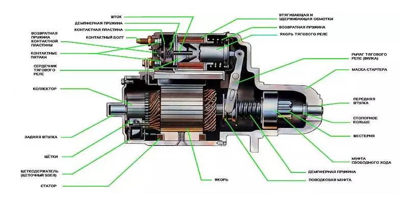 Любой стартер является объединением 40 – 60 отдельных деталей, из которых состоят главные части этого сложного механизма.
