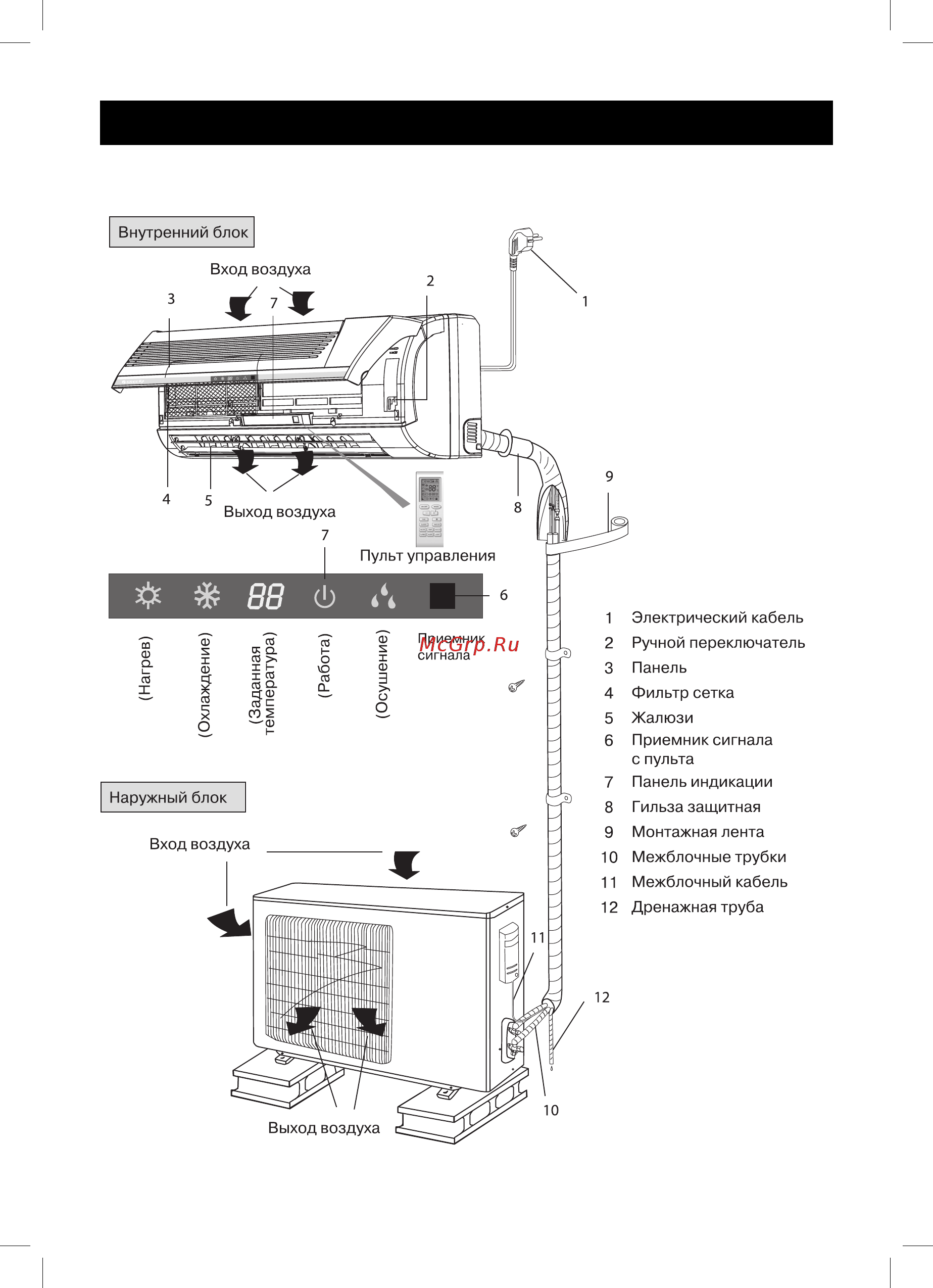 ВАЖНО! В случае работы кондиционера в режиме нагнетания теплого воздуха, внешний модуль снабжается четырех ходовым клапаном, который управляется от внутреннего модуля.
