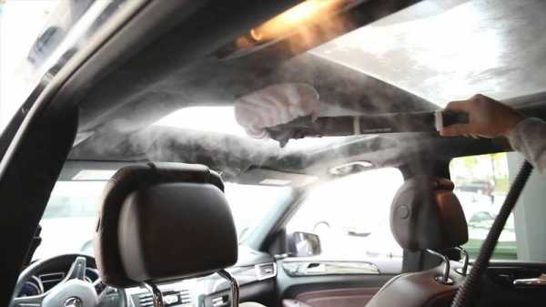 - нанести автохимию на тканевые элементы, начиная с обшивки потолка;