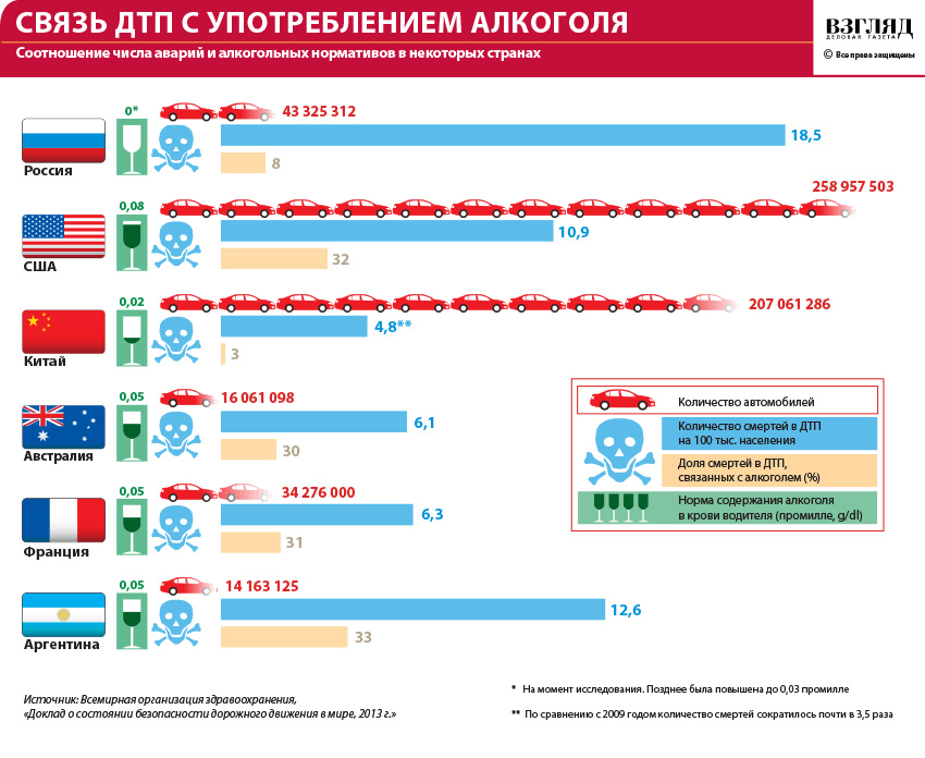 ДТП) и Санкт-Петербург (7,2 тыс.), однако по числу смертей лидируют Московская область (1,3 тыс. погибших) и Краснодарский край (1,1 тыс.). 8,6% ДТП произошли по вине пьяных водителей (в 2014 г. — 9,4%).