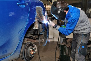 По этой причине при выполнении сварочных работ на автомобиле гораздо более важно правильно подключить сварочный аппарат к свариваемым деталям, нежели снимать или оставлять клеммы на аккумуляторе. Массу надо подсоединять как можно ближе к точке сваривания, чтобы на пути сварочного тока не оказалось тонкой автомобильной проводки и электрооборудования.