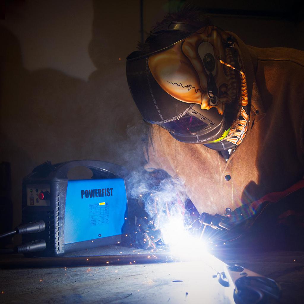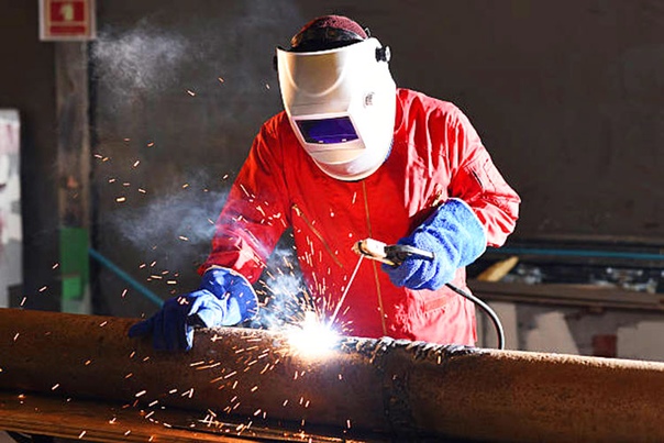 Маска с темным стеклом защищает глаза от слепящего света, возникающего при сваривании. Рукавицы и костюм из негорючих материалов закрывают кожу от брызг металла и искр.