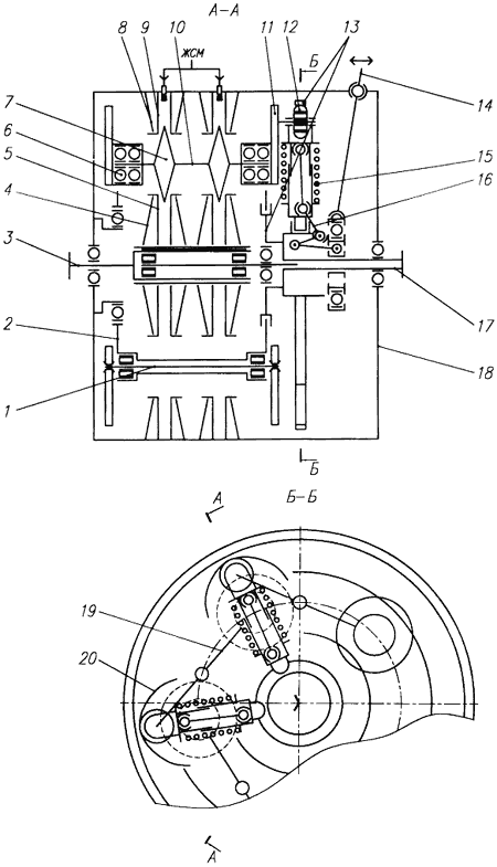 Тарельчатая пружина в шкиве 1 и витая пружина в шкиве 2 поджимают цепь при отсутствии давления в гидравлической системе.