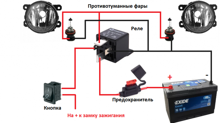 - Проверить жгут проводов (реле передних противотуманных фар — аккумулятор)