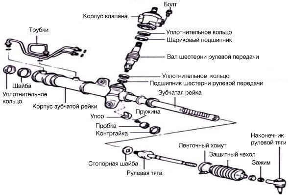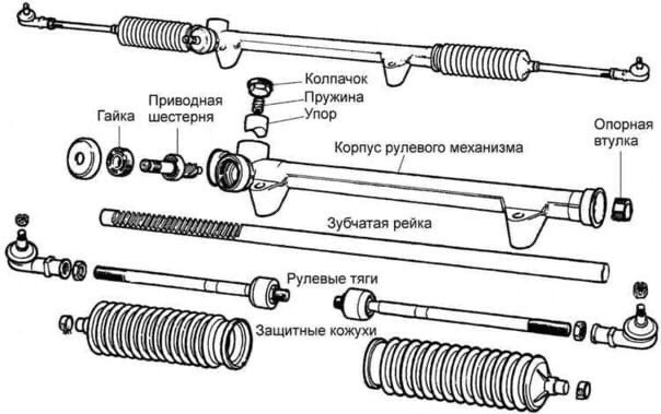 Типы, схемы и устройства рулевых реек