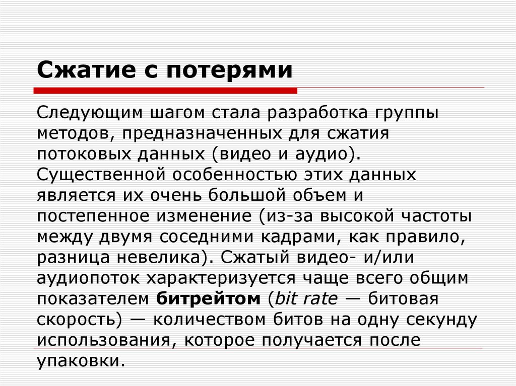 Такой способ уменьшает размер файла, удаляя ненужные биты информации.