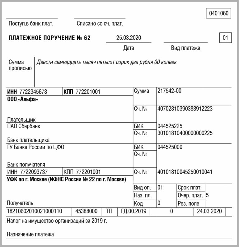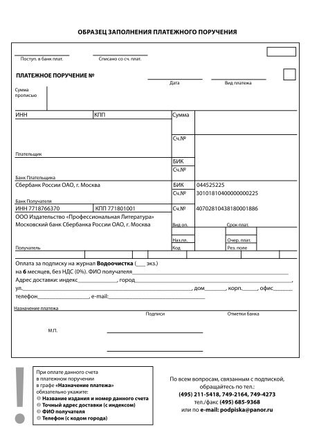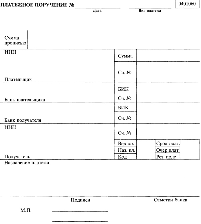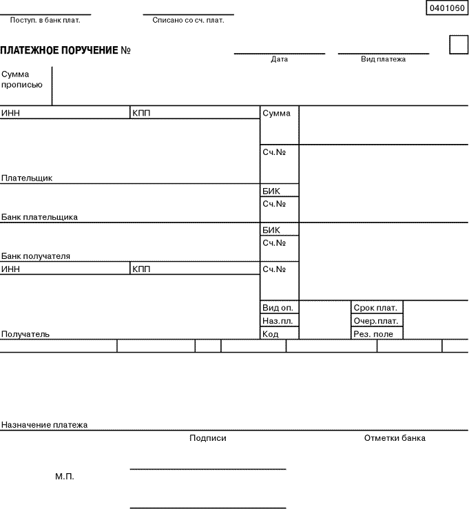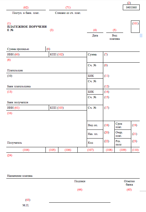 Актуальная форма платежного поручения