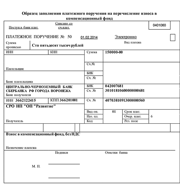 Скачать образец заполнения платежного поручения