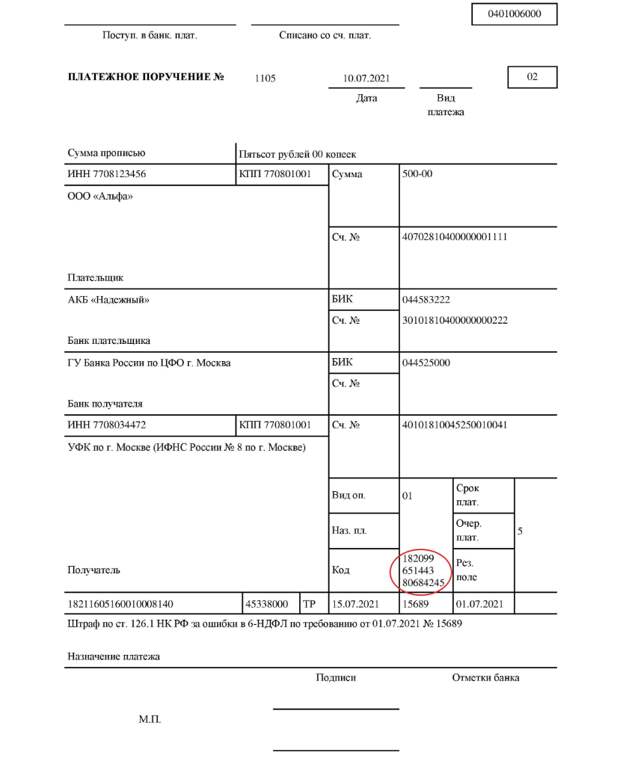 6. Если вы по привычке заполнили платёжку по старым правилам, напишите в свободной форме заявление об уточнении и отправьте в налоговую.