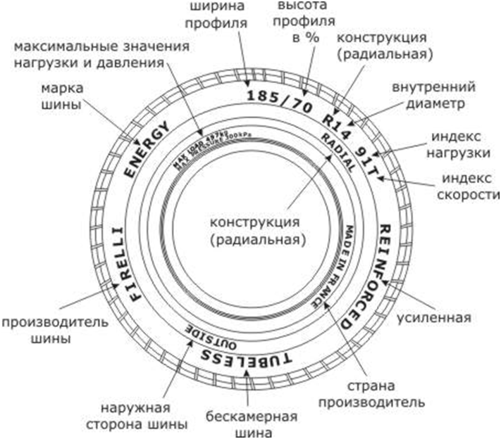 Многочисленные цифровые отметки обозначают физические характеристики — их необходимо соотносить с данными колёсных дисков, чтобы правильно подобрать резину. На каждом таком изделии можно увидеть буквенное и цифровое обозначения, которые указываются через дробь.