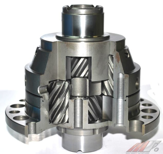 через Miata Turbo Forum Существует три различных варианта Torsen, взятых из разных этапов его эволюции. Есть Т-1, Т-2 и Т-3. T-1 увеличивает внутреннее трение за счет косозубых шестерен со скрещенными осями, что приводит к более высокому коэффициенту смещения крутящего момента, хотя и не без более высокого люфта, а также к большему количеству возможных проблем с шумом, вибрацией и резкостью.