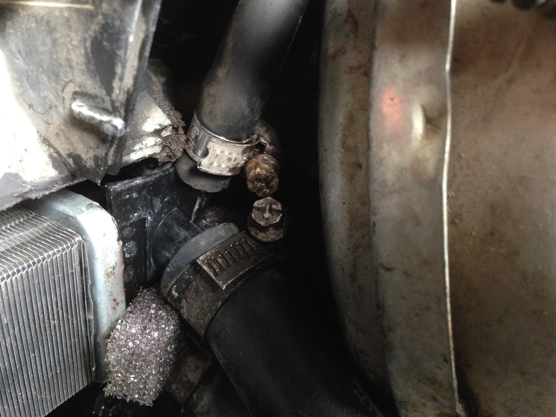 Чтобы определить, в результате чего образовалась течь тосола, нужно осмотреть все патрубки. Вполне вероятно, что какой-либо хомут может быть недотянут. Также следует исследовать патрубки на наличие микротрещин, так как за несколько лет активной эксплуатации они вполне могут образоваться.