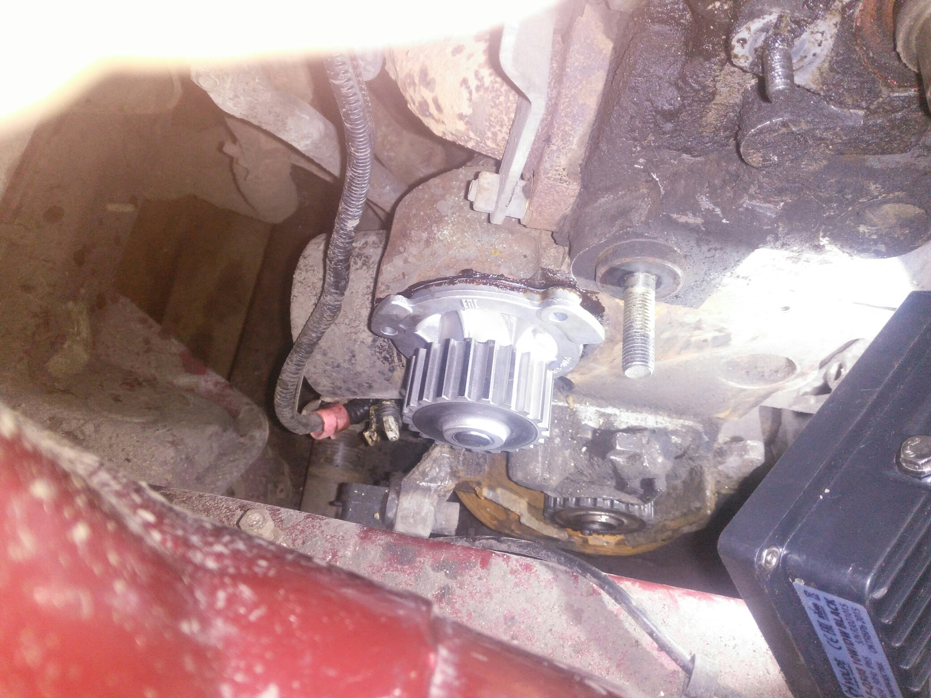 - Изношенный ремень водяного насоса