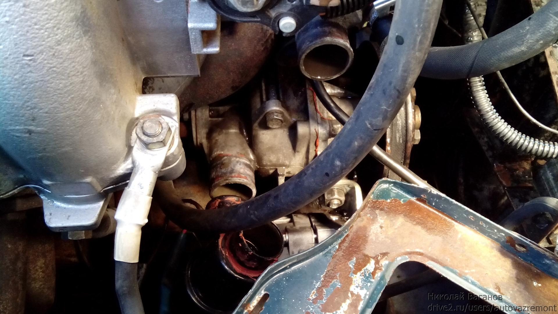 Лужа тосола под термостатомРемонт неисправностей, если течет тосол на моделях ВАЗ