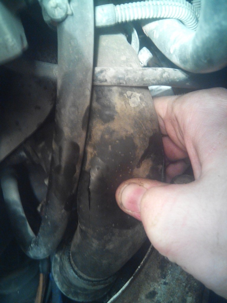Резиновые патрубки следует осматривать первыми, так как доступ к ним зачастую не затруднен. Также в случае обнаружения проблемы с патрубком данный элемент можно заменить без особого труда. Главной проблемой патрубков является их растрескивание, так как резиновое изделие подвержено воздействию высоких температур, а также работает в условиях постоянного нагрева и остывания. Трещины резиновых патрубков обычно не являются причиной сильных протечек, антифриз просачивается через дефекты медленно. Во время осмотра нужно учитывать, что трещина может появиться на разных сторонах патрубка. По указанной причине патрубки следует тщательно ощупывать, а также для осмотра труднодоступных участков можно использовать зеркало.